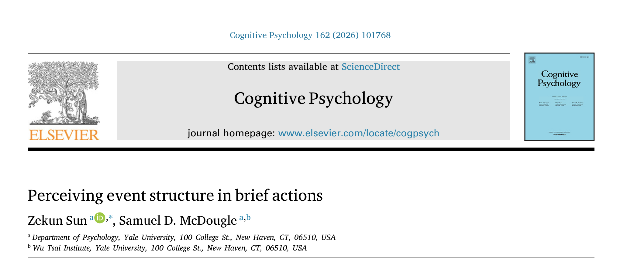 • New paper out at Cognitive Psychology! --> "Perceiving event structure in brief actions"